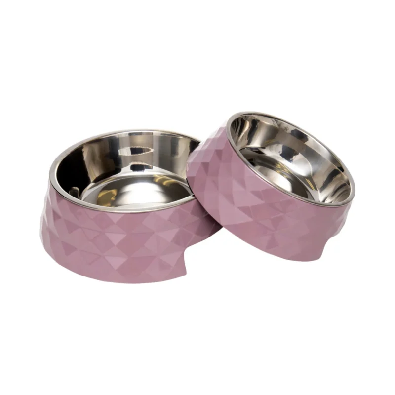 Stylish & Durable Pet Feeder: Country Living Set of 2 Stainless Steel Dog Bowls with Twill Melamine Stand Easy Clean, Modern Design in Wood Rose