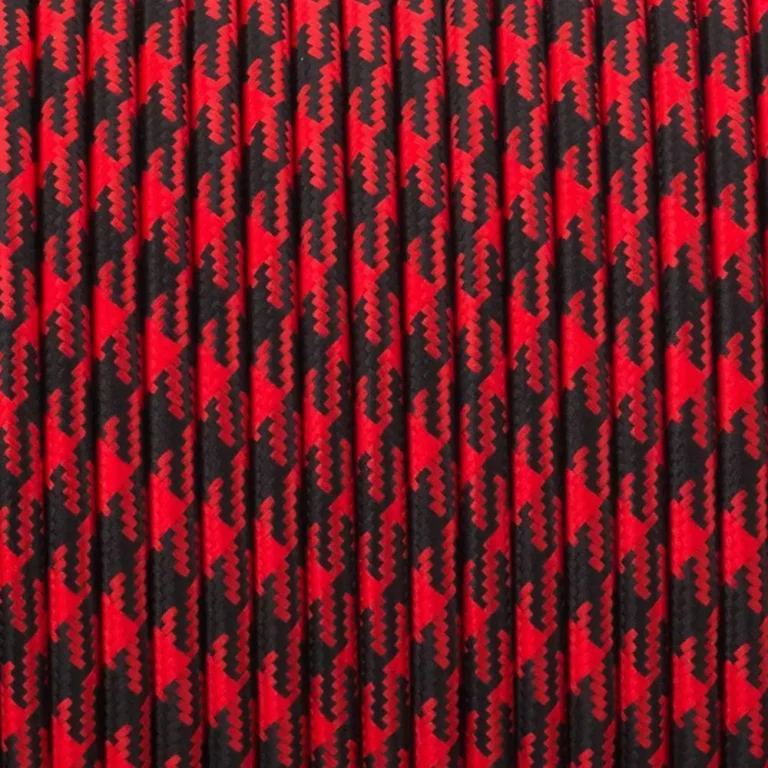 3 Core Round Vintage Braided Fabric Cable – Red & Black Houndstooth, 0.75mm Flex, 2995