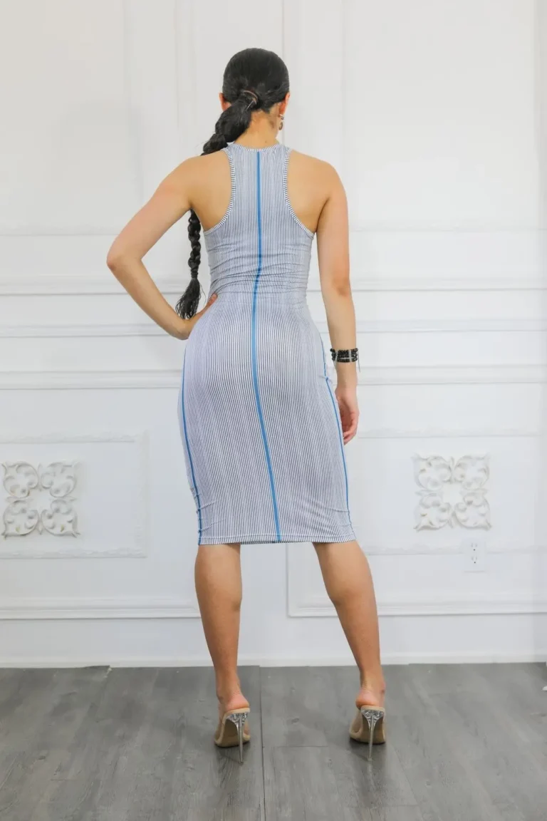 Chic Stripe Affair Striped Sleeveless Bodycon Midi Dress – Perfect Blend of Comfort & Style