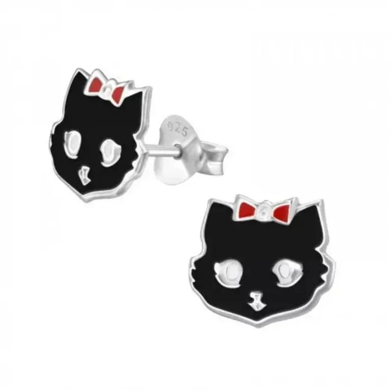 Children’s Silver Cat Stud Earrings with Epoxy – Adorable & Durable Kids’ Accessories