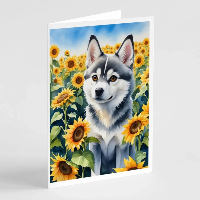 USDC26.04 – USDC31.30Pack of 8 Alaskan Klee Kai in Sunflowers Greeting Cards – High-Quality 5×7 Blank Cards with Envelopes – Perfect for All Occasions