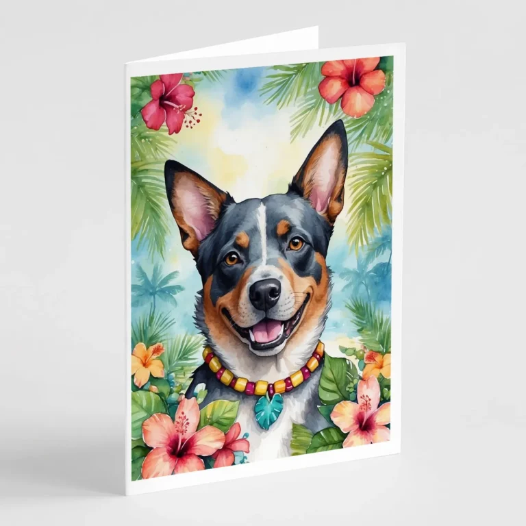 USDC20.88 – USDC26.10Australian Cattle Dog Luau Greeting Cards – Pack of 8 | High-Quality 5×7 Folded Cards with Envelopes | Perfect for Any Occasion | Blank Inside for Personal Messages | Vibrant Artwork