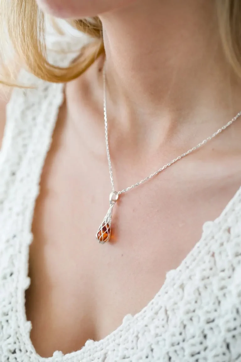 Caged Teardrop Amber Pendant – Handcrafted Baltic Amber Necklace | Timeless Elegance and Natural Beauty