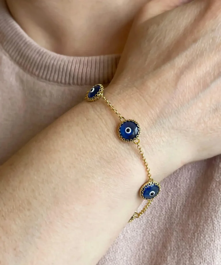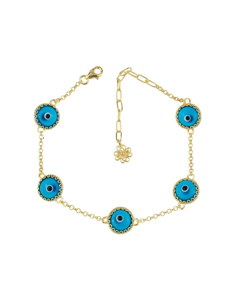 USDC26.75 – USDC455.005 Beads Lapis Blue Evil Eye Women’s Gold Plated Silver Link Bracelet – Stylish Protection & Elegance