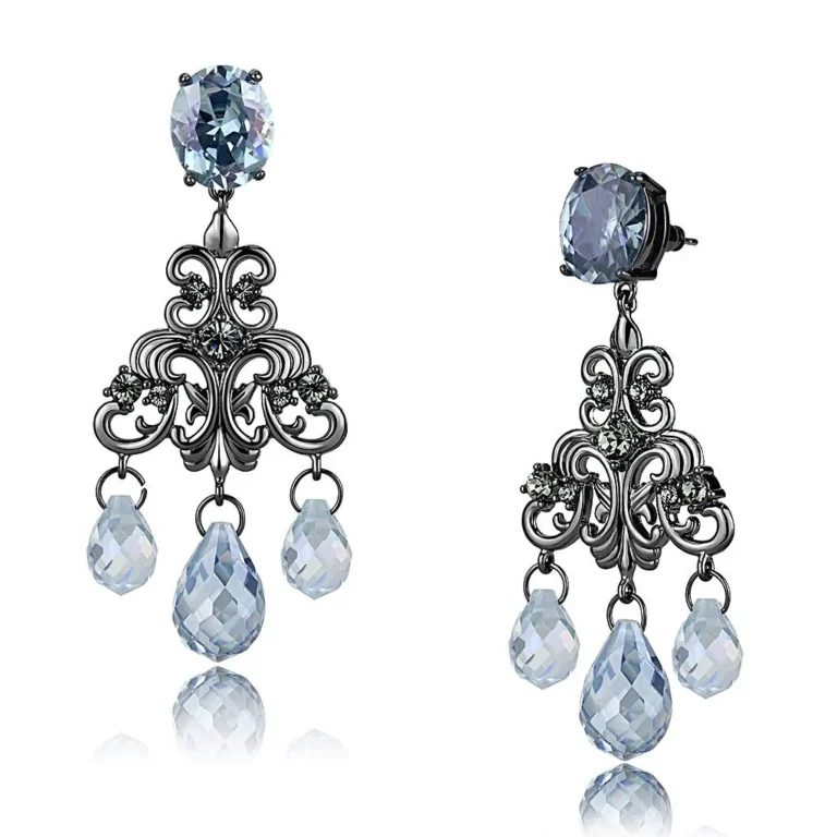 Stunning TIN Cobalt Black Brass Earrings with AAA Grade CZ in Sea Blue – Elegant Jewelry