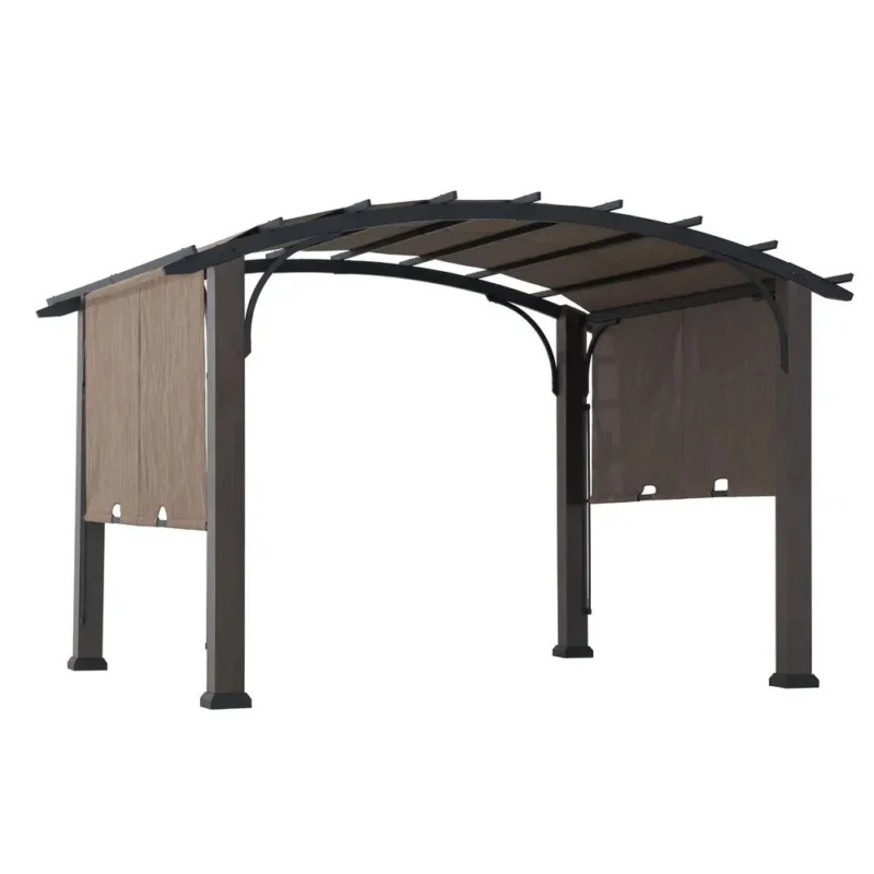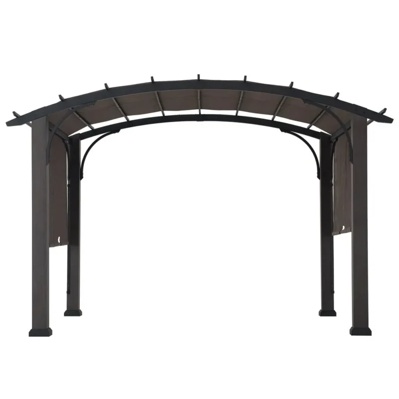 Elegant 10 x 12 ft. Dylon Arched Roof Pergola with Adjustable Canopy – Matte Black Steel Frame