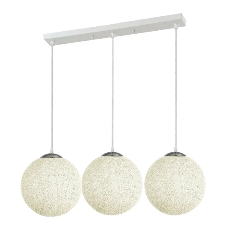 USDC31.33 – USDC34.48Elegant White Rattan Globe Light – Multi Outlet Lattice Wicker Design – E27 Pendant Lamp for Home & Cafe