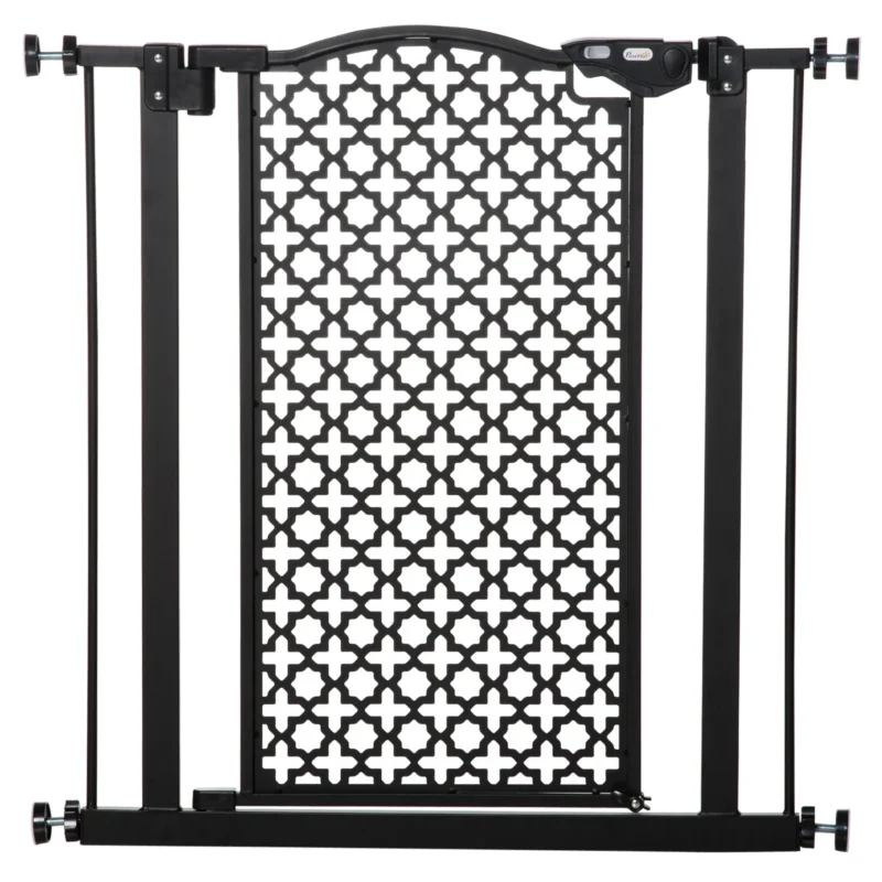 PawHut Pet Safety Gate Barrier | Adjustable 74-80 cm Width | Auto-Close Door with Double Locking | Perfect for Doorways, Hallways, and Stairs | Black