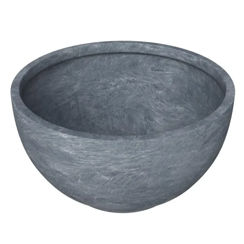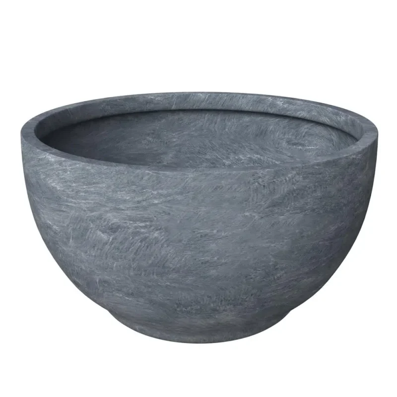 Grove Series Hemisphere Poly Clay Planter – 12.4″ Dia, 7.1″ High | Aged Concrete | Indoor/Outdoor Weather-Resistant Planter