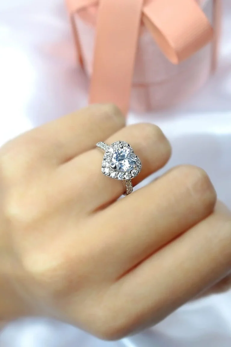 Elegant 925 Silver Halo Heart Ring – 18K White Gold Plated with Sparkling Cubic Zirconia | Timeless Beauty & Elegance