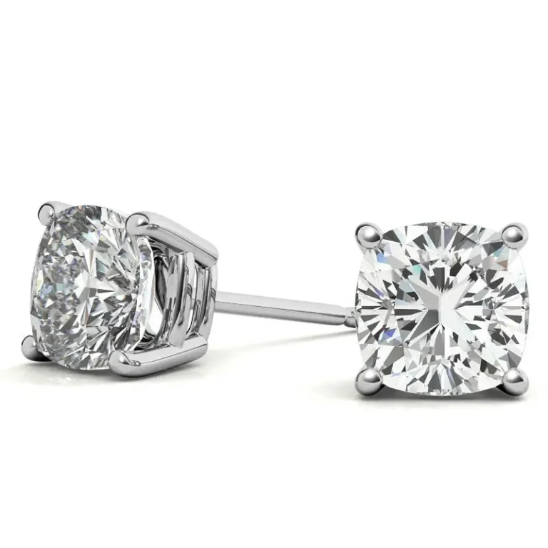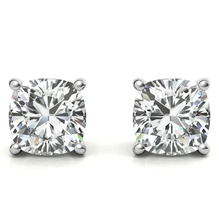 4.00 CTW Lab Created Moissanite Cushion Cut Stud Earrings in Sterling Silver – 8mm Sparkling Stones