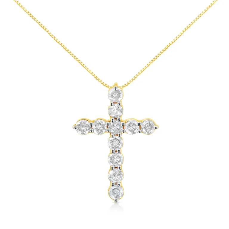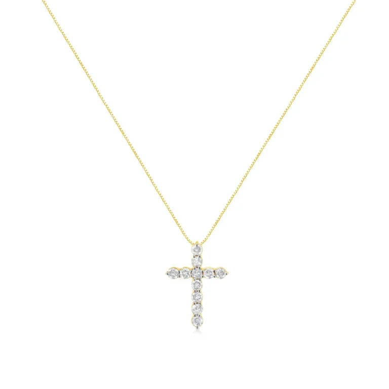 10K Yellow Gold Diamond Cross Pendant Necklace with Box Chain – 1.0 Cttw Round Brilliant Cut, 18″