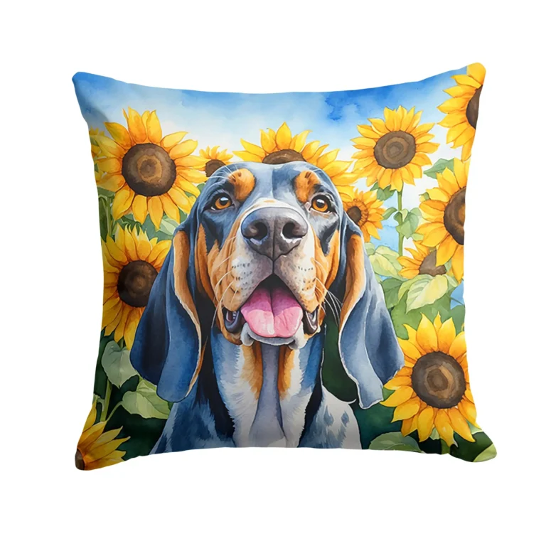 Vibrant American English Coonhound in Sunflowers Throw Pillow | Outdoor & Indoor Decor by Caroline’s Treasures