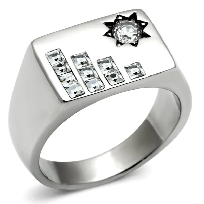 TK481 – High Polished Stainless Steel Ring with Clear AAA Grade CZ – Elegance in Every Detail
