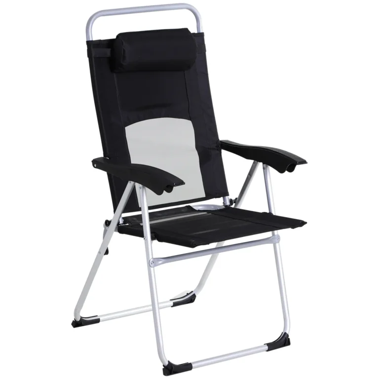 Outsunny 3-Position Adjustable Recliner Outdoor Folding Chair with Pillow – Black | Portable Patio Armchair for Camping, Garden, and More