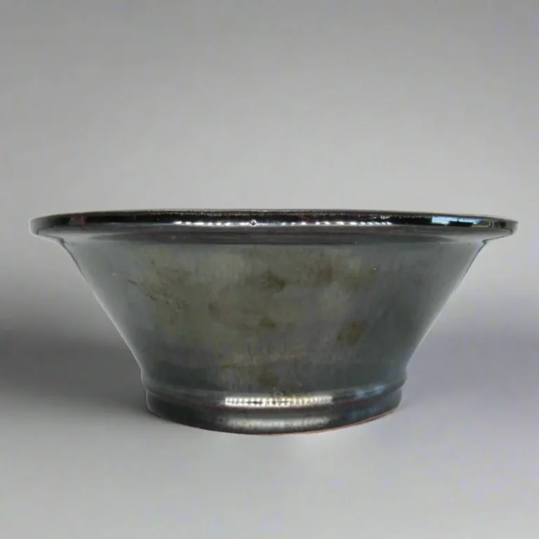 Elegant 16cm Glazed Bonsai Pot – Round Black/Silver Finish, Perfect for Indoor Plants