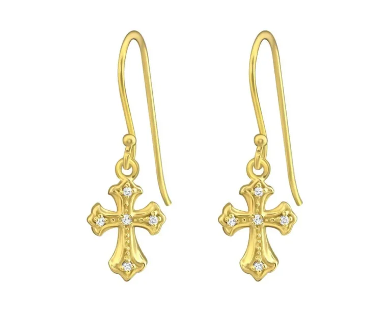 Gold Plated Silver Cross Hanging Earrings – Elegant Sterling Silver Jewelry for Any Occasion