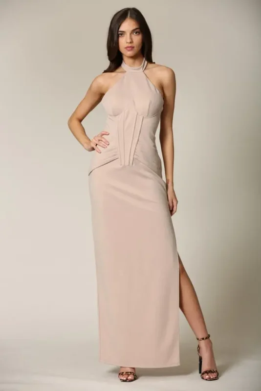 Emelye Long Dress with Built-In Underwire and Front Boning – Elegant Evening Gown by Rose Paulino