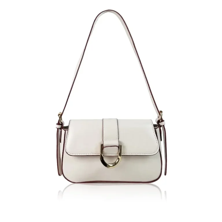 Amanda Shoulder Bag – Stylish Ivory Faux Leather Handbag with Sophisticated Hardware Detail by iKrush