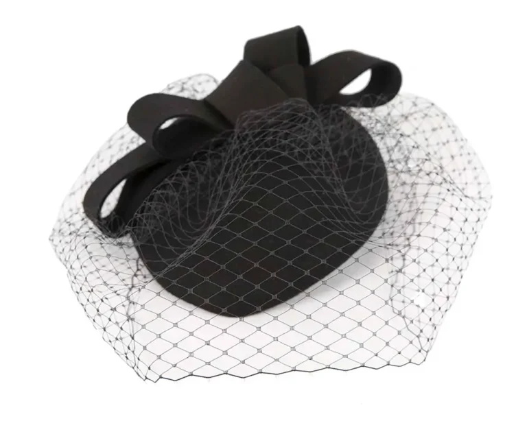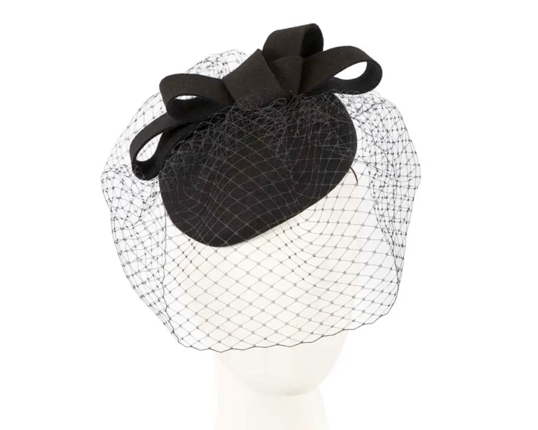 Elegant Black Pillbox Hat with Face Veil & Felt Bow – Ideal for Special Occasions