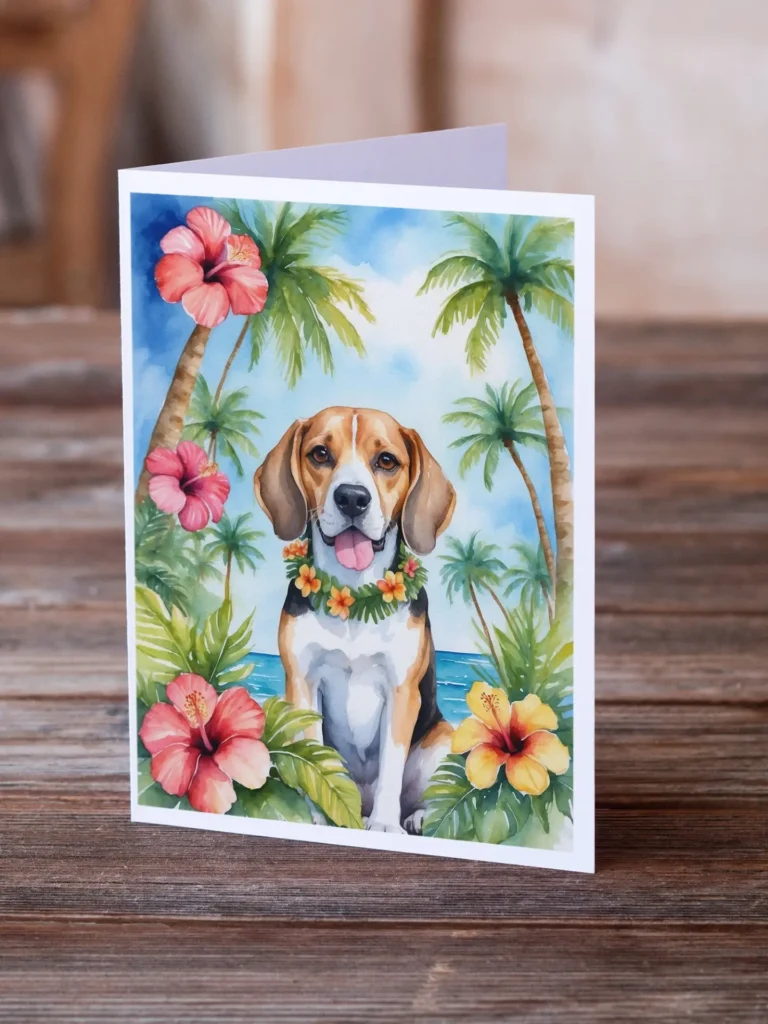 Beagle Luau Greeting Cards Pack of 8 – High-Quality Blank Cards with Envelopes – Perfect for Any Occasion