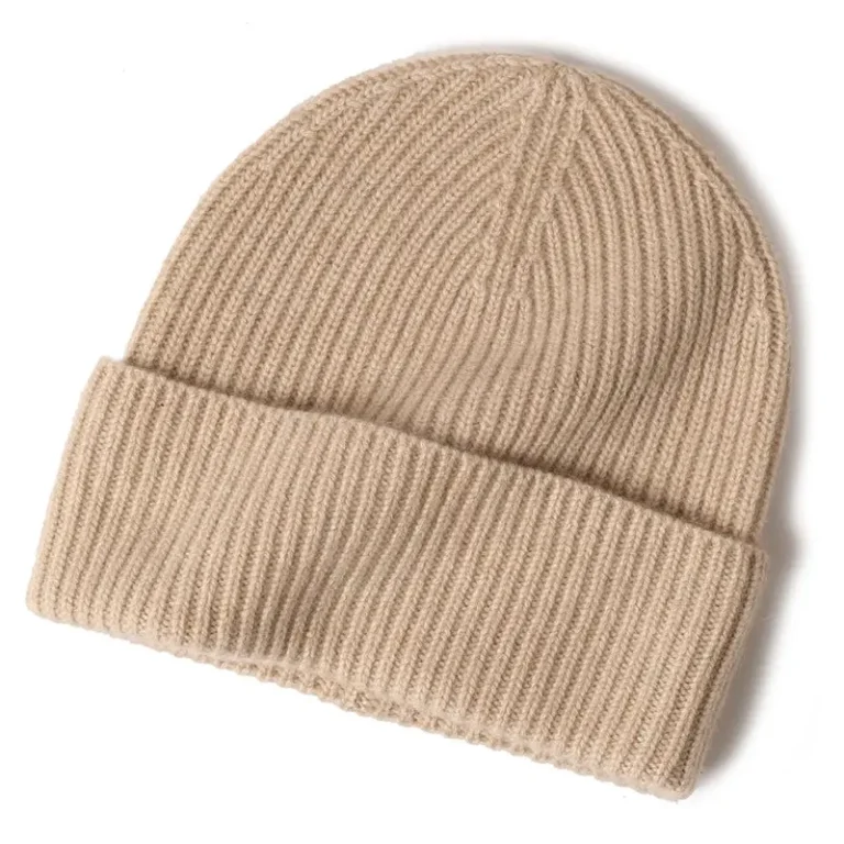 Cashmere Alpi Ribbed Turn Up Beanie Camel – Luxury Comfort and Style