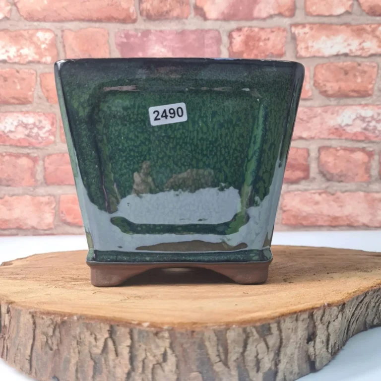 Elegant 15cm Square Glazed Cascade Bonsai Pot | Dark Green Ceramic | Ideal for Bonsai Trees