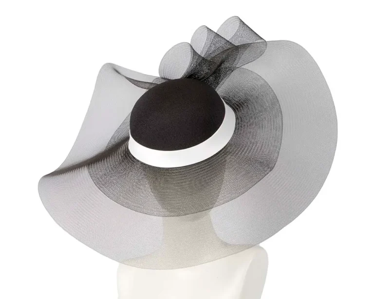 Elegant Black & White Large Brim Custom Made Ladies Hat for Special Occasions – Perfect for Weddings and Events