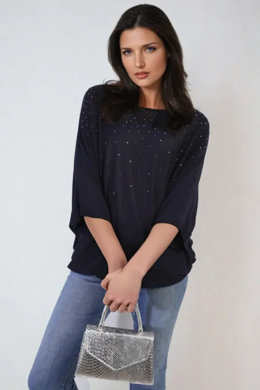 Trendy Karina Round Neck Studded Oversized Top – Stylish & Comfortable Fashion