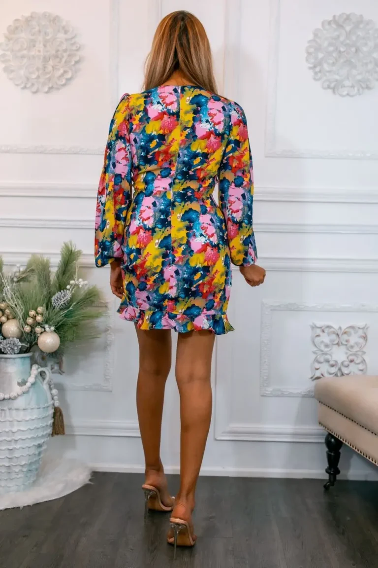 Work of Art Bubble Sleeves Cinched Mini Dress Stunning & Unique Fashion Statement