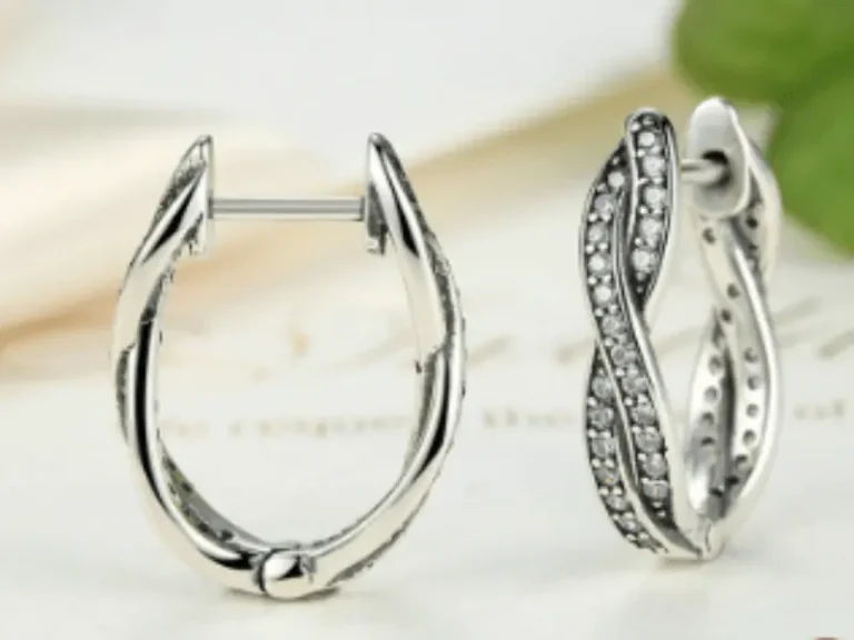Diamante Studded Twist Hoop Earrings – Sterling Silver with Sparkling Cubic Zirconia
