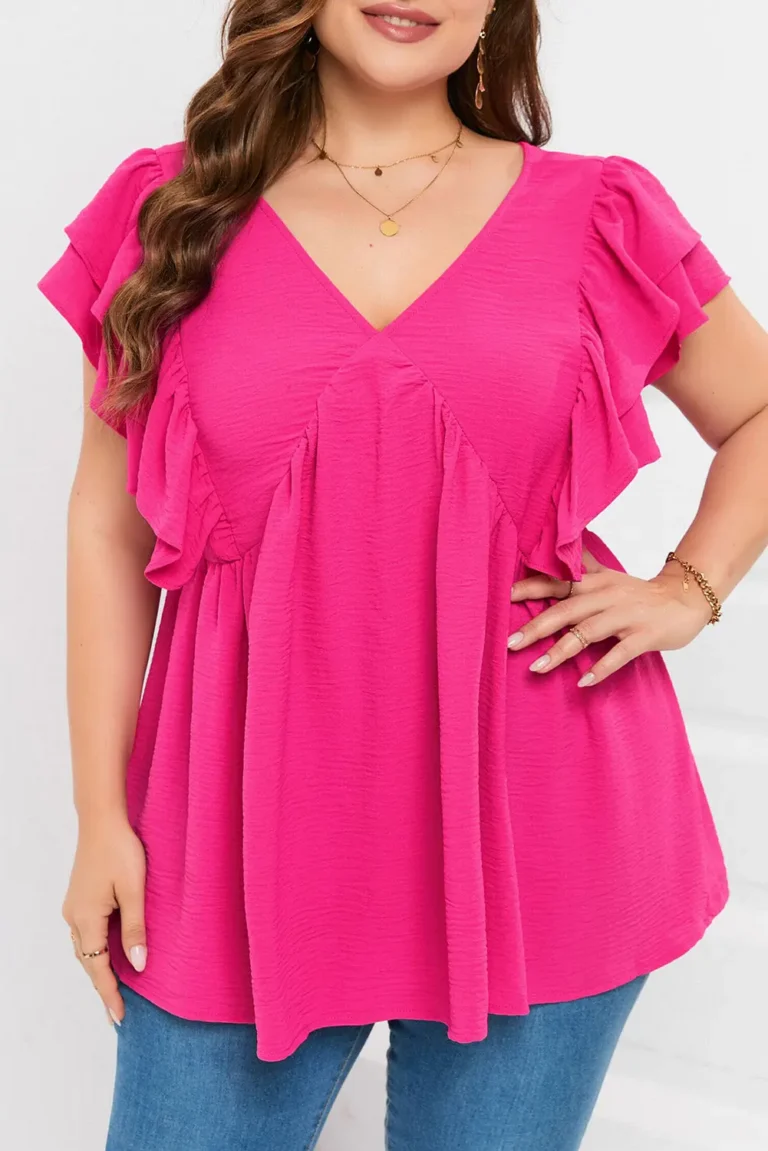 Robin Plus Size Ruffle V-Neck Tie-Back Tunic Top – Chic Babydoll Style for Curvy Women