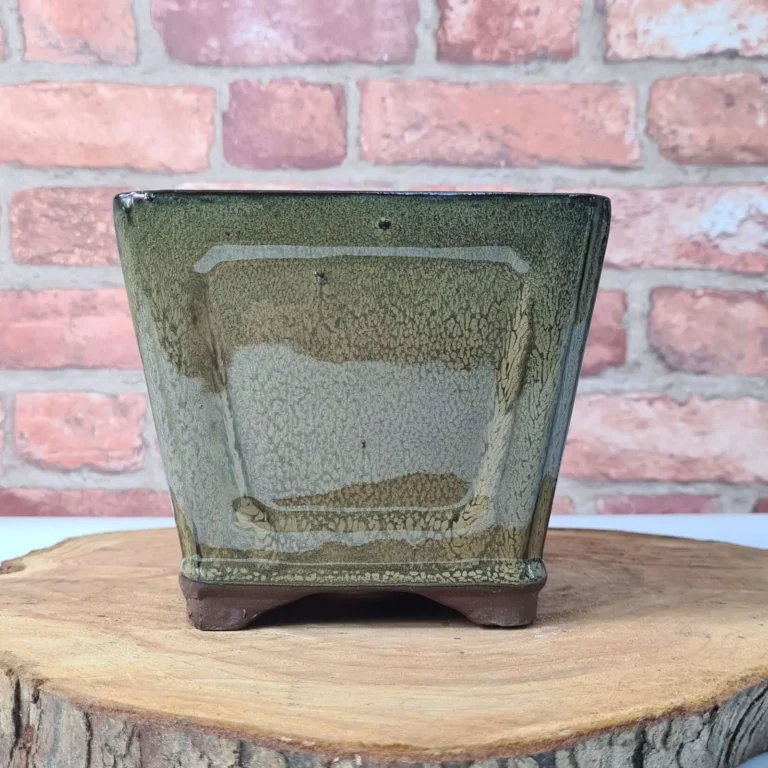 Stunning 15cm Glazed Cascade Bonsai Pot – Square | Vibrant Green Finish
