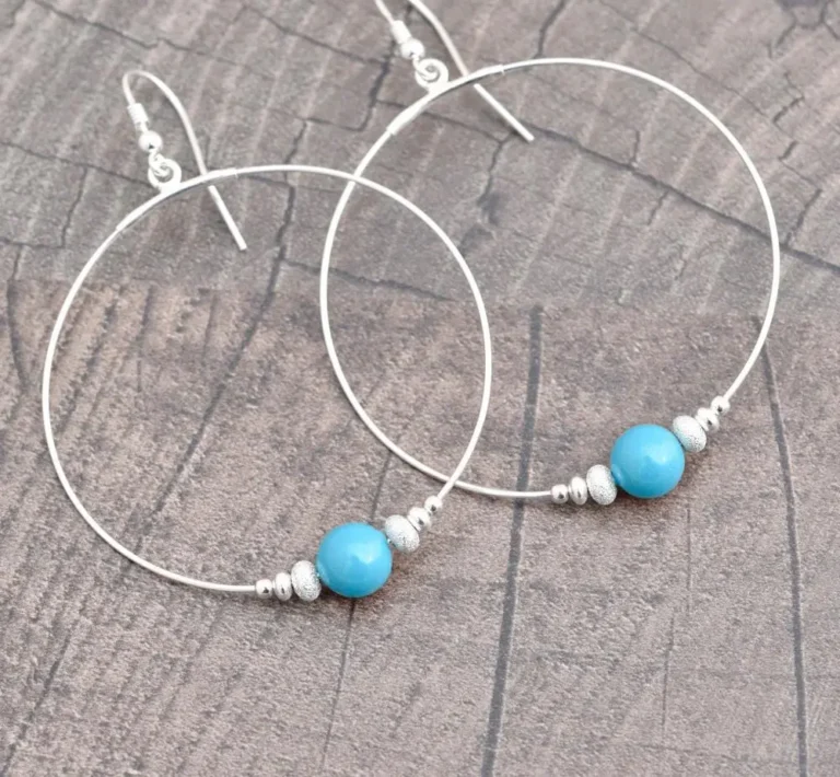 USDC26.09 – USDC31.32Elegant Large Hoop Silver Turquoise Pearl Earrings – Sterling Silver Jewelry