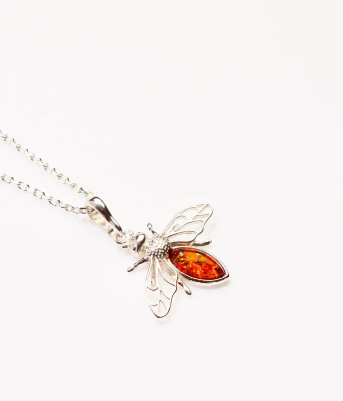 Amber Bee Necklace – Embrace Community, Creativity & Personal Power | Sterling Silver & Baltic Amber