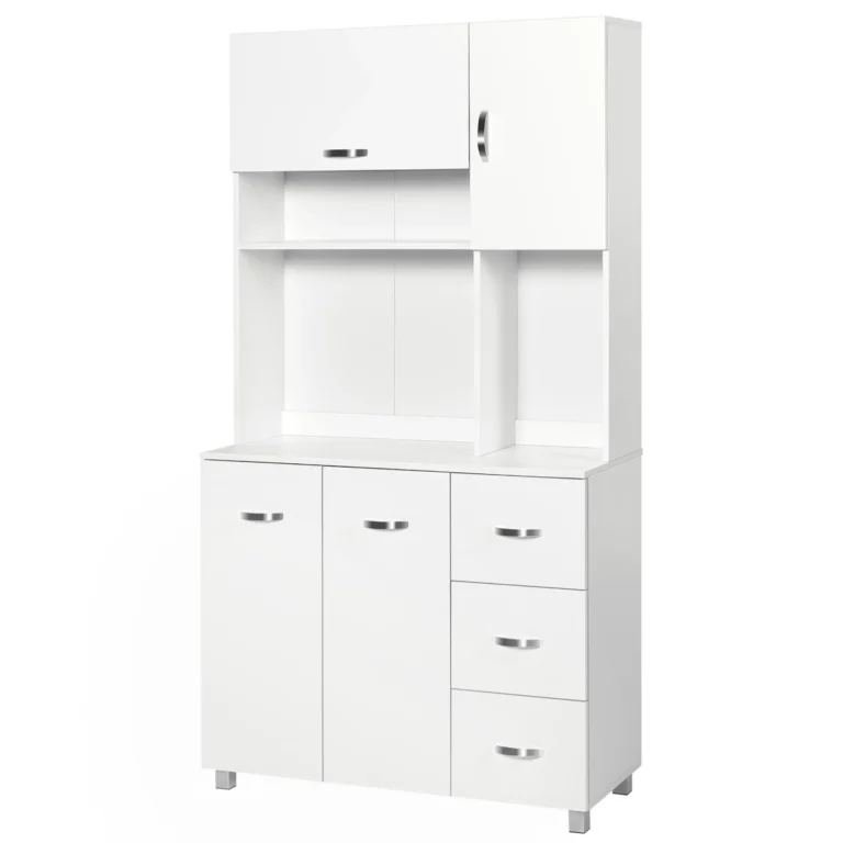 HOMCOM Freestanding Kitchen Cupboard – Versatile Storage Cabinet with Doors, Shelves, Drawers & Open Compartments – White