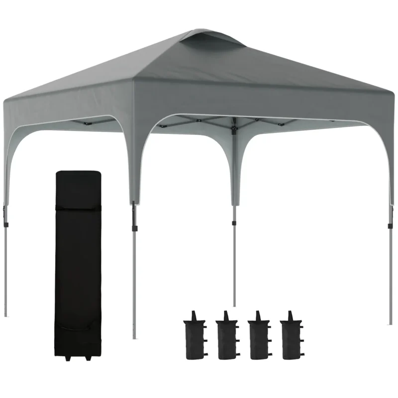 Outsunny 3x3M Pop Up Gazebo – Foldable Canopy Tent with Wheels & Weight Bags for Garden Patio Party, Dark Grey