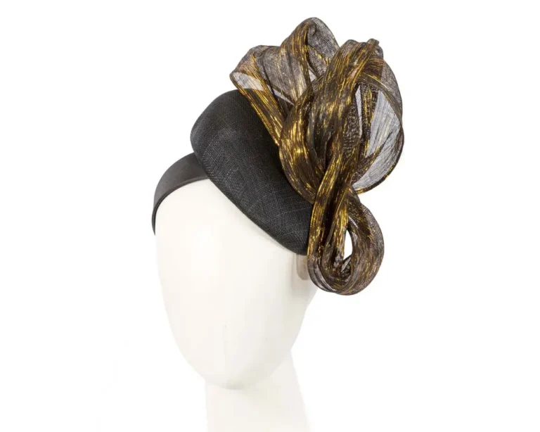 USDC20.89 – USDC26.12Elegant Black Pillbox Fascinator with Gold Bow | Fillies Collection | Perfect for Spring Racing