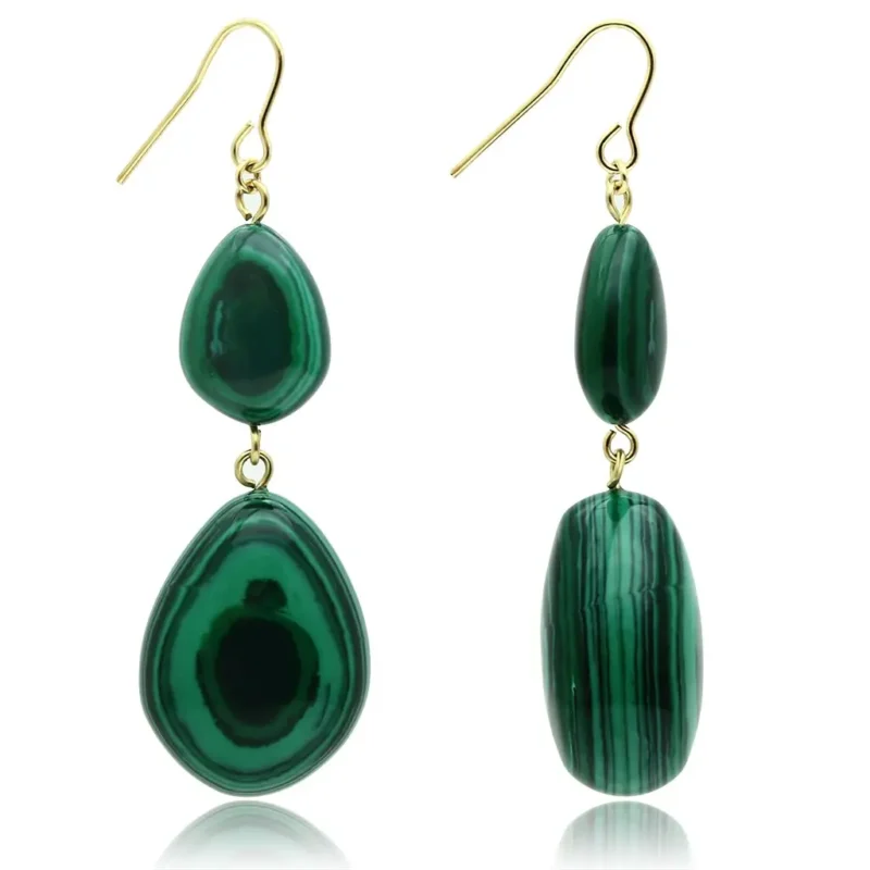 Elegant Gold Brass Earrings with Emerald Green Synthetic Malachite – Shop Now
