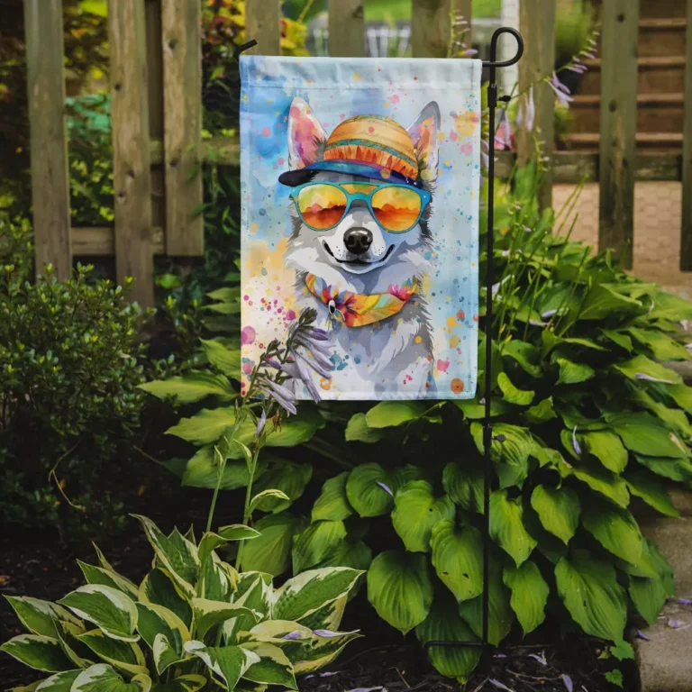 Alaskan Klee Kai Hippie Dawg Garden Flag – Weatherproof, Double-Sided Decorative Outdoor Flag
