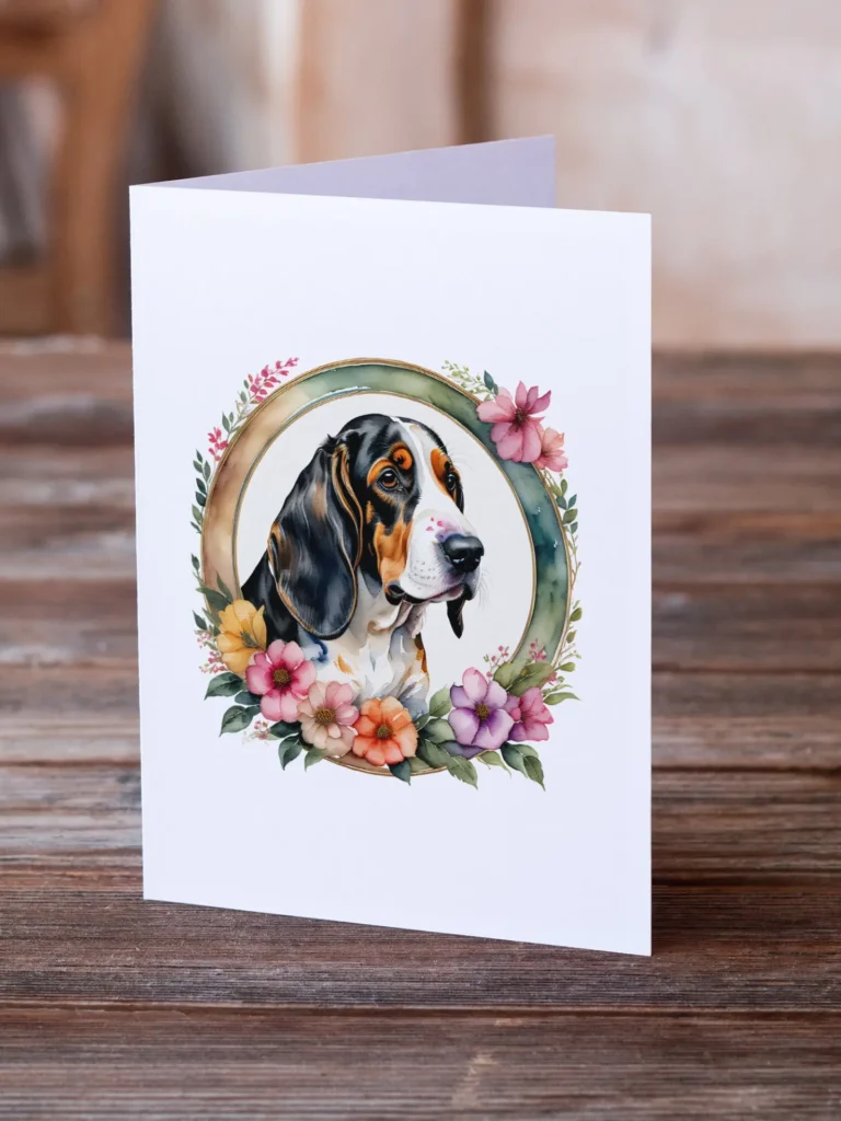 Basset Hound and Flowers Greeting Cards – Pack of 8, Blank Interior, High-Quality 80 lb Cover Stock, Includes Envelopes, Ideal for Any Occasion