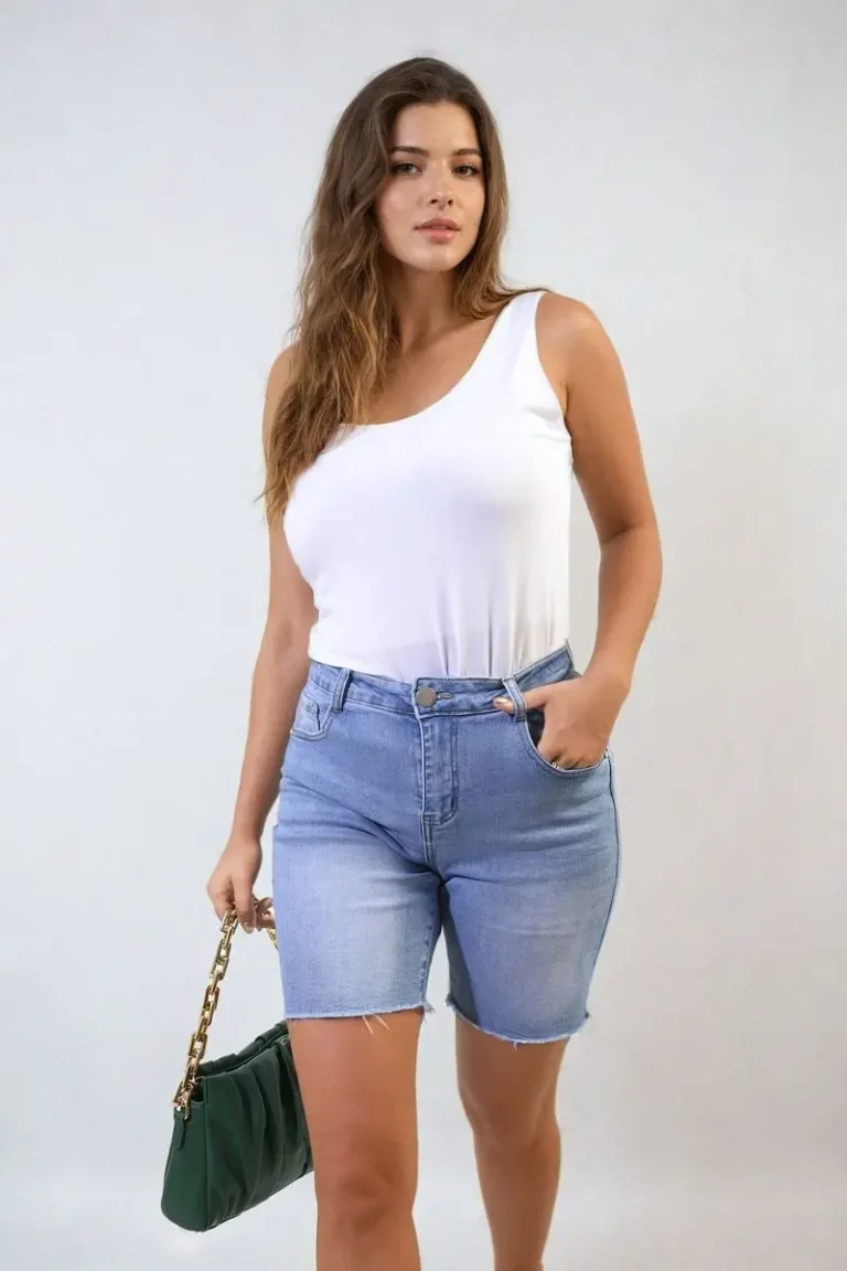 Stylish High Waisted Raw Hem Denim Shorts Perfect Summer Fashion for Effortless Chic Look