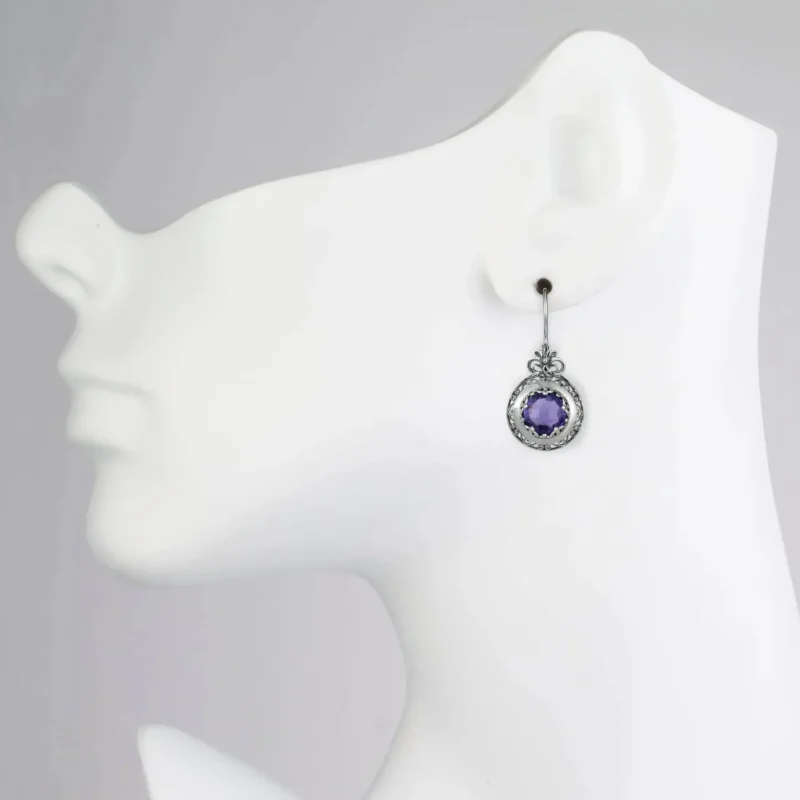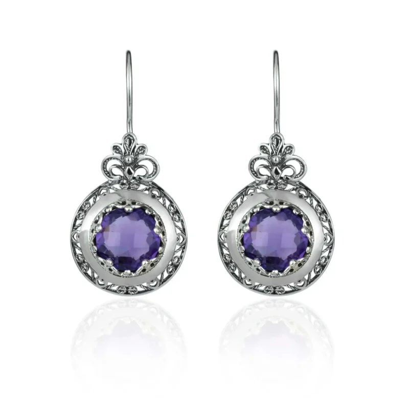 Handmade Filigree Art Amethyst Gemstone Floral Design Women Silver Drop Earrings – Elegant Sterling Silver Jewelry