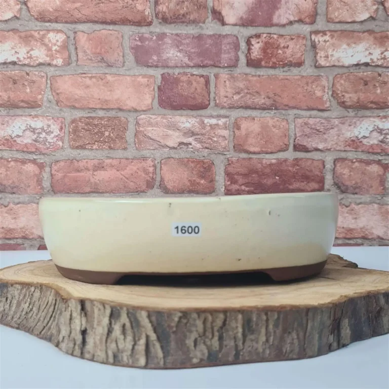 Elegant 26cm Glazed Oval Bonsai Pot – White | Ideal for Home & Garden Decor | 26cm x 22cm x 6.5cm