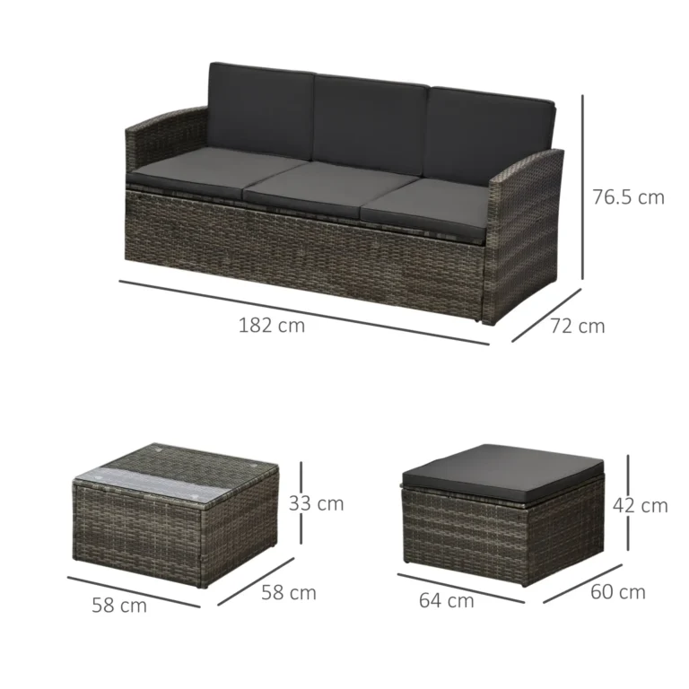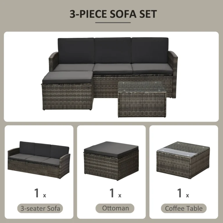 Outsunny Rattan Garden Furniture Set – 4 Seater Grey Corner Sofa, Coffee Table & Footstool, Outdoor Patio Comfort