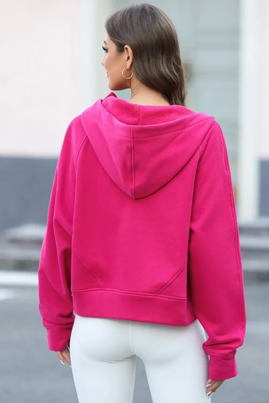 Rosie Half Zipper Pocket Pullover Hoodie – Stylish & Cozy Women’s Hoodie with Thumb Holes
