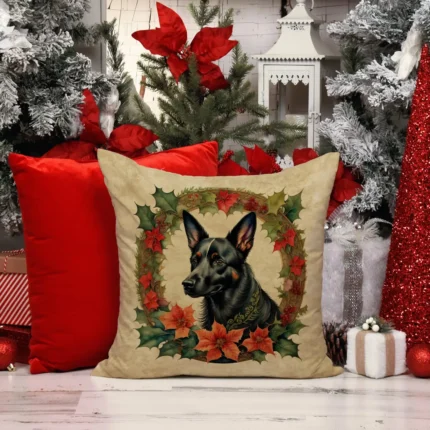 Australian Kelpie Christmas Flowers Throw Pillow – 18×18 Fabric Decorative Pillow for Indoor & Outdoor Use