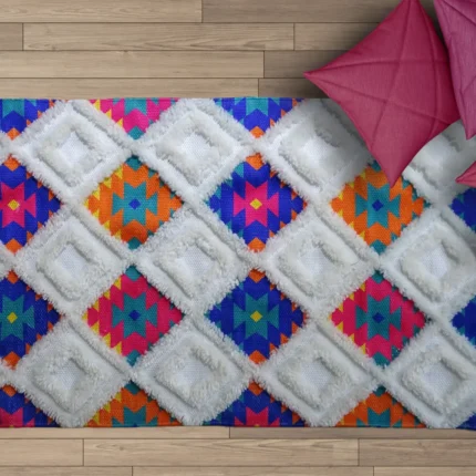Chicos Home Accent Rug – Modern Style, White & Multi-Color Pattern, Handmade Polyester Rug