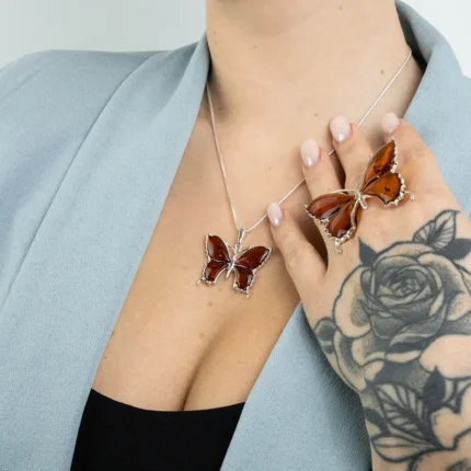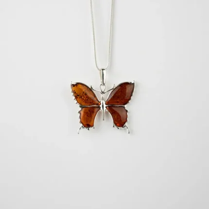 Statement Butterfly Pendant Necklace | Elegant Amber & Sterling Silver Jewelry