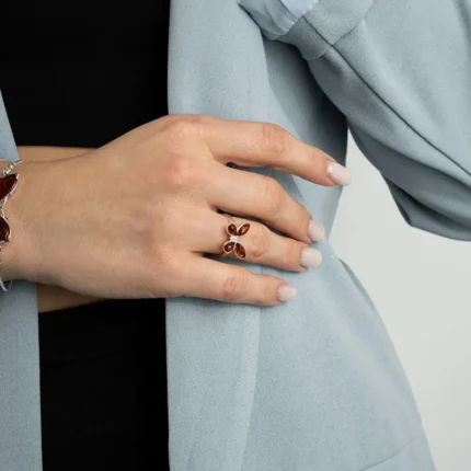 Subtle Butterfly Adjustable Ring – Elegant & Charming Jewelry with Baltic Amber & Sterling Silver